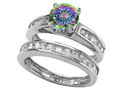 Here are some of the great features of 2.85 cttw Sterling Silver 14K White Gold Plated Genuine Round Mystic Rainbow Topaz Wedding Set - Gold Plated Silver