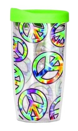 Spoontiques 16306, Spread the word of peace and show some love with this insulated tumbler! Decorated in rainbow, tie-dye peace signs everyone will know just how hip and cool you really are! Comes with a snap on lid with sliding closure. Fits standard cup holders.